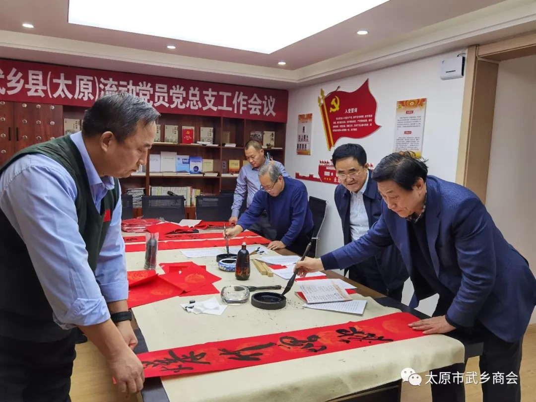 2022年1月18日上午,太原市武乡商会“学史力行办实事,迎春接福送温暖”,专门邀请省书法家协会主席石跃峰、副主席武磊等人挥毫泼墨为会员写春联累计近百余幅。一幅幅春联,凝聚着书法家的一片片深情厚意;一幅幅春联,表达了商会对会员在新的一年里美好祝福和期许。